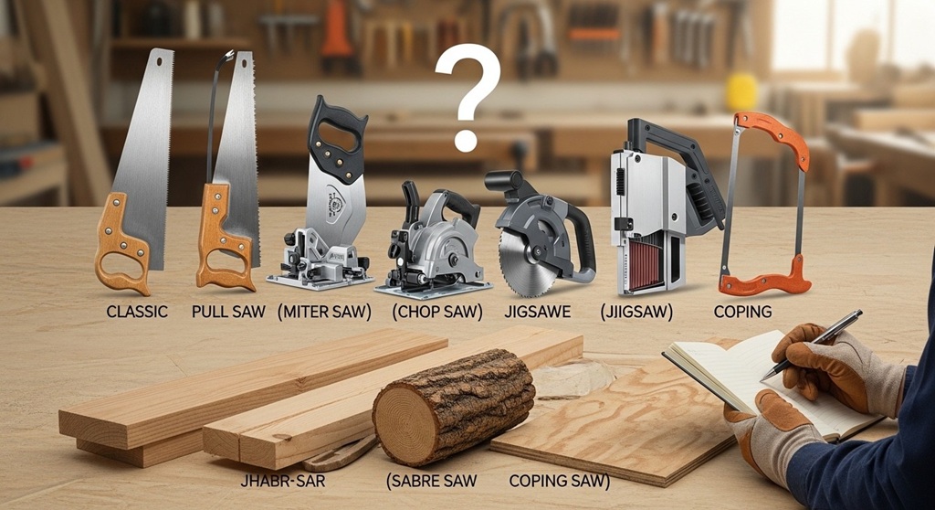 Match your saw based on cut type (rip, crosscut, bevel, curve), wood thickness, and project scale.